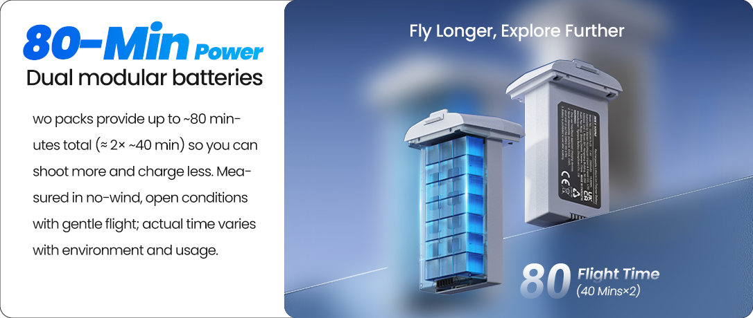 Dual-battery design delivers extended flight time, giving service teams more coverage in inspections and giving adventurers more freedom to explore wide landscapes without interruption.